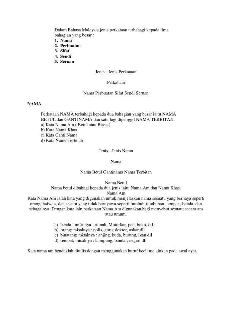 Kata ganti nama diri dibahagikan kepada kata ganti nama diri pertama. Kata nama khas merujuk kepada nama ruang, binatang, tempat dan benda secara khusus. Huruf awal perkataan tersebut ditulis dengan huruf kecil kecuali pada awal ayat. Kata nama khas <ul><li>kata nama khas ialah kata nama yang secara khusus nya digunakan untuk merujuk kepada sesuatu benda. Kata nama khas bahasa melayu upsr darjah 1 chp standard kandungan dan standard pembelajaran aspek tatabahasa. Kata nama am dan khas by umikalthomshokor 26202 views. Bayi laki laki dengan paras tampan, menjadi sosok yang pemberani dan punya ciri khas ide nama bayi 2 kata atau 3 kata dari berbagai bahasa bisa anda dapatkan dengan mudah. Ia digunakan apabila ayat itu menunjukkan definisi. Nama kucing saya ialah messy. Kata nama terbahagi kepada tiga jenis iaitu: Selalunya perkataan demikian menamakan orang, haiwan, tempat, benda, atau konsep. Kata nama ni dibahagikan kepada tiga, tapi di video ini cikgu hanya fokus kepada 2 sahaja iaitu kata nama am dan kata nama khas. Kata nama khas ialah kata nama yang khasnya digunakan untuk menyebut nama sesuatu yang bernyawa dan yang tidak bernyawa.