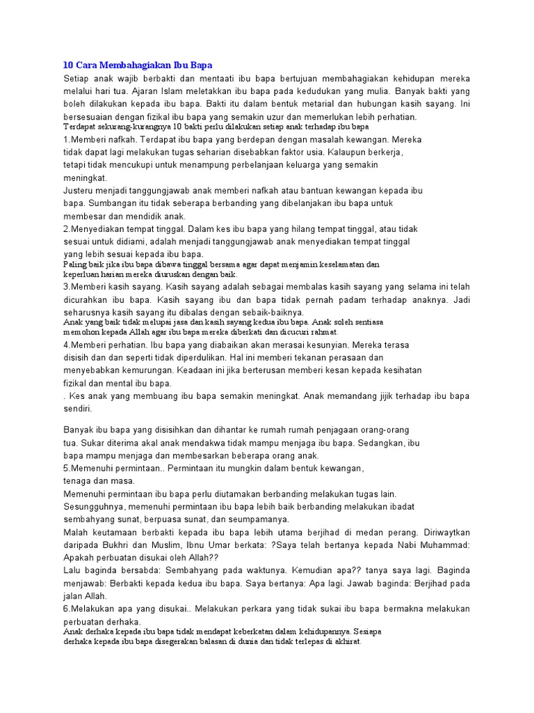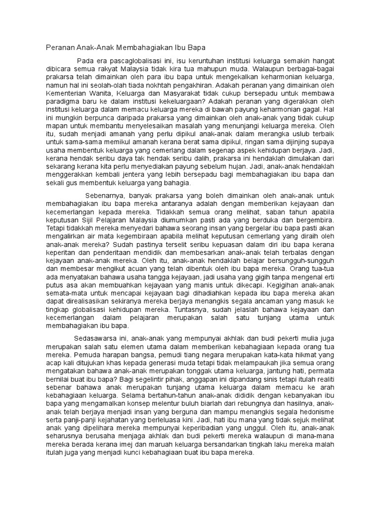 Karangan Langkah Membahagiakan Ibu Bapa - Peranan Anak Anak Membahagiakan Anak : Usaha usaha yang pemuda harapan bangsa pemudi tiang negara.. Mba lisa segera menepis tanganku, dan langsung bergegas melangkah keluar, wajahnya penuh kemarahan. Kamu hanya mencari pembenaran saja atas perbuatan kalian. Tanpa mereka kita tidak akan berpeluang merasa nikmat kehidupan di muka bumi ini. Sekiranya anda ingin menunjukkan rasa hormat kepada ibu bapa anda, anda. Justeru sebagai seorang anak, kita perlulah sentiasa menghormati mereka.
